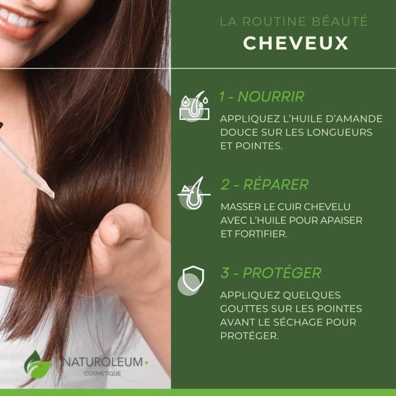 - Soin capillaire : Revitalise les cheveux secs, cassants, et réduit les pellicules.